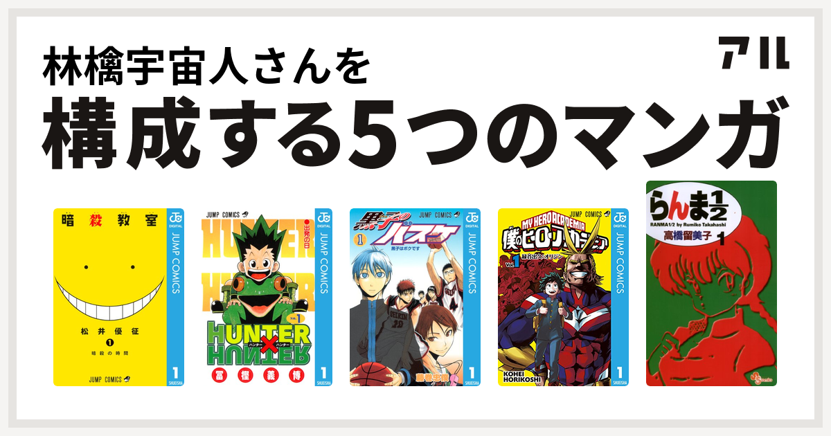 林檎宇宙人さんを構成するマンガは暗殺教室 Hunter Hunter 黒子のバスケ 僕のヒーローアカデミア らんま1 2 私を構成する5つのマンガ アル